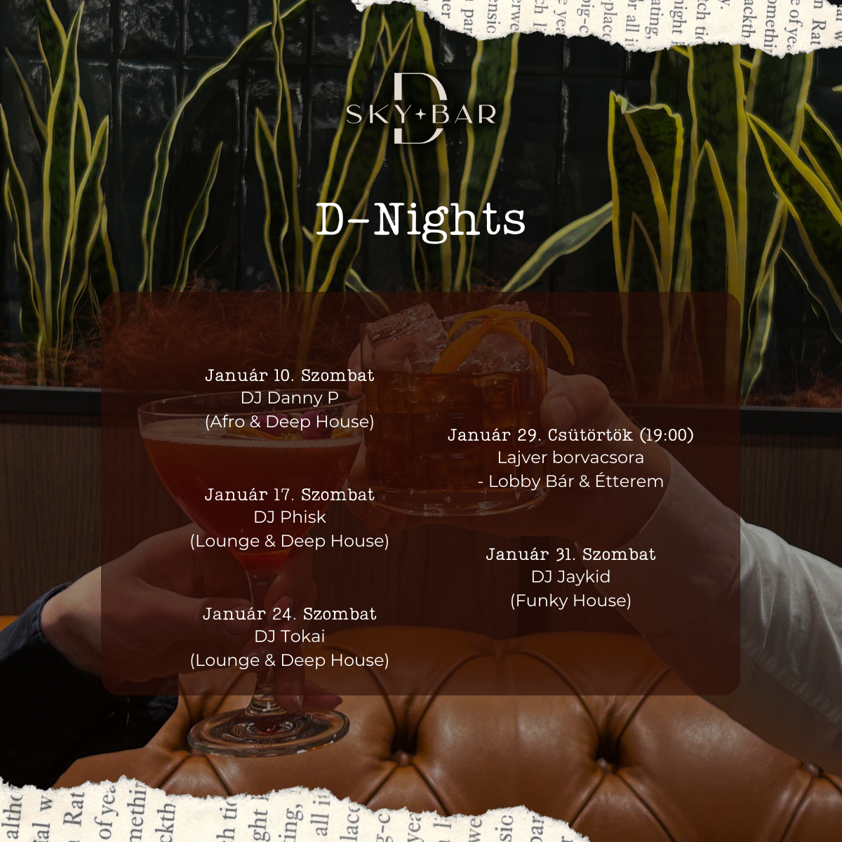 Csatlakozz hozzánk januárban is a D-Skybarban, ahol minden szombaton DJ gondoskodik a hangulatról.